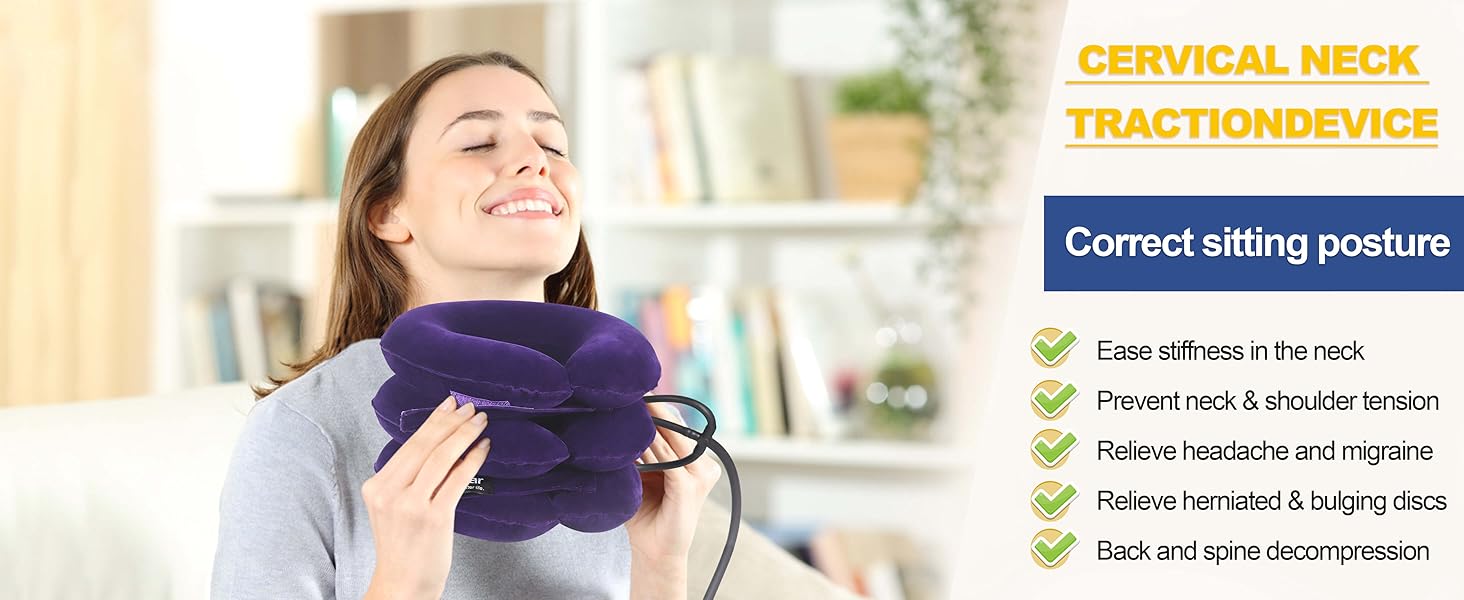 The Cervical Neck Traction Device is an inflatable, ergonomic solution designed to alleviate neck and shoulder pain while promoting better posture. Made from high-grade silk flocking fabric, it offers a comfortable fit and includes a health care tutorial for effective use. Ideal for anyone suffering from cervical issues due to sedentary lifestyles, this device is a must-have for modern professionals seeking relief and wellness.