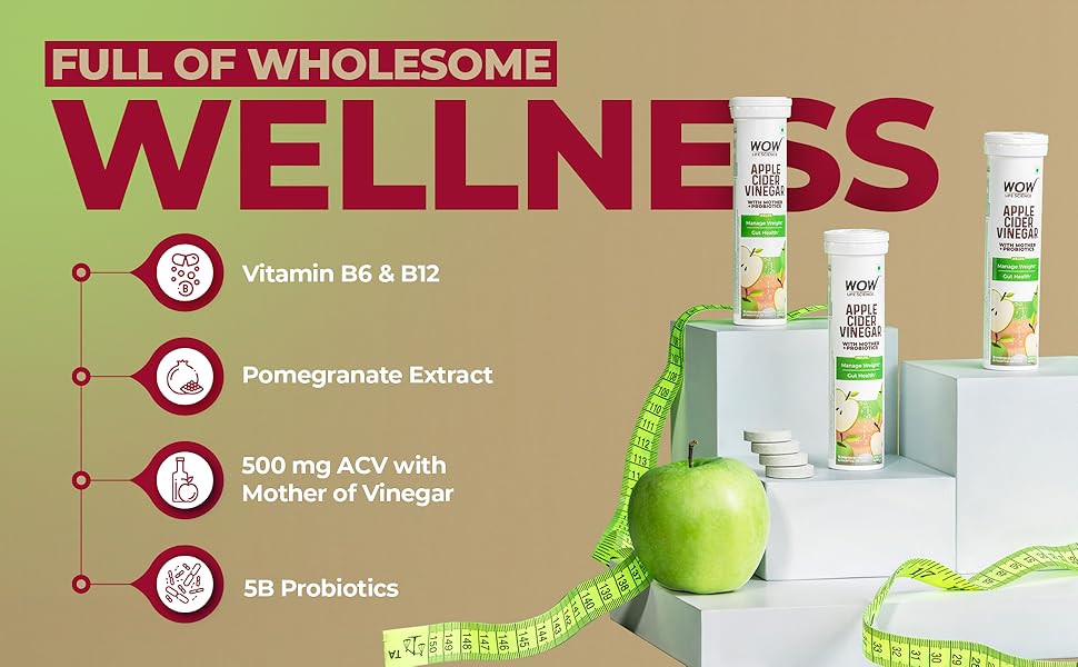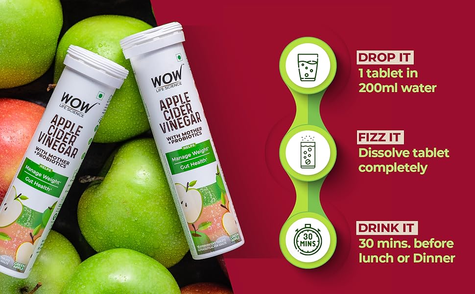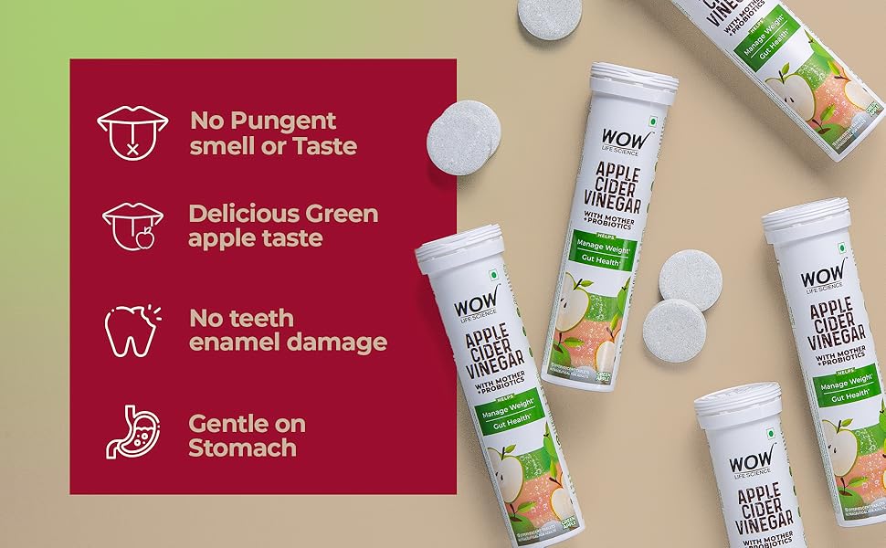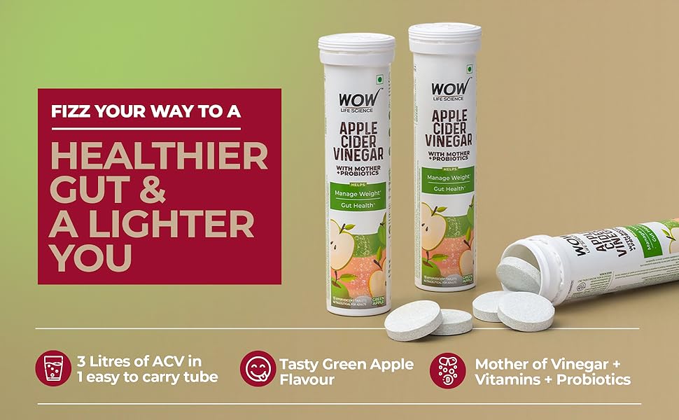 WOW Life Science Apple Cider Vinegar Effervescent Tablets combine the benefits of natural apple cider vinegar with probiotics to support weight management, gut health, and digestion. Each tablet is designed for easy consumption, providing a refreshing alternative to traditional ACV while delivering essential nutrients for a healthier lifestyle.